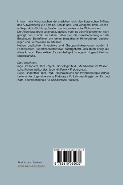 Immer mehr Heranwachsende entziehen sich den klassischen Milieus des Aufwachsens wie Familie, Schule usw. und verlagern ihren Lebensmittelpunkt in Richtung Straße bzw. in provisorische Wohnformen. Der Anschluss droht verloren zu gehen, wenn es den Hilfesystemen nicht gelingt, den Kontakt zu halten. Daher zielt die Praxisforschung auf die Beteiligung Betroffener, um deren biografische Hintergründe, Lebenslagen und Sichtweisen zu erfassen. Neben qualitativen Interviews und Gruppendiskussionen wurden in Fachdiensten Expertinneninterviews durchgeführt. Das Buch bringt auf diese Art auch Perspektiven für nachhaltige Lösungen in Jugendhilfe- und Sozialplanung.