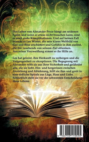 Das Leben von Alexander Pryce hängt am seidenen Faden und wenn er etwas nicht brauchen kann, sind es noch mehr Komplikationen. Und auf keinen Fall braucht er Lee Winter, die sein klares Weltbild von Gut und Böse erschüttert und Gefühle in ihm auslöst, die ihn zusehends von seinem Ziel ablenken. Aus reiner Verzweiflung nimmt er ihre Hilfe an. Lee hat gelernt, ihre Herkunft zu verbergen und die Vergangenheit zu akzeptieren. Die Begegnung mit Alexander reißt sie aus ihrer Sicherheit und gefährdet alle, die sie liebt. Hin- und hergerissen zwischen Anziehung und Angst, hilft sie ihm und gerät in eine tödliche Spirale aus Lüge, Hass und Liebe.Schließlich steht sie vor der schwersten Entscheidung ihres Lebens.