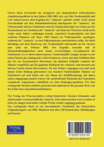 Dieses Buch beschreibt die Ereignisse der dramatischen Schwedischen Antarktisexpedition in den Jahren 1901-1903, die von Otto Nordenskjöld und Carl Anton Larsen, dem Kapitän der "Antarctic" geleitet wurde. Nach einem Zwischenhalt auf den Südshetland-Inseln durchquerte die "Antarctic" die Orléansstraße mit der Pauletinsel und die Mannschaft legte ein Depot auf der Seymourinsel an. Nachdem die "Antarctic" am Rand des Packeises nicht mehr weiter nach Süden vordringen konnte, entschied Nordenskjöld, mit fünf weiteren Männern auf Snow Hill Island ein Winterquartier anzulegen, während die "Antarctic" zu den Falklandinseln zurückkehren sollte. Sie blieb allerdings auf dem Rückweg von Nordenskjöld unbemerkt im Eis stecken und sank im Februar 1903. Der Kapitän erreichte mit 16 Mannschaftsmitgliedern nach einem zweiwöchigen Gewaltmarsch die Pauletinsel, wo er überwintern musste. Nordenskjölds Gruppe konnte in der ersten Saison das umliegende Gebiet kartieren, sowie mit dem Schlitten über das Eis zur Seymourinsel übersetzen. Im nächsten Frühjahr warteten die Männer vergeblich auf die geplante Rückkehr der Antarctic und mussten aus diesem Grund erneut überwintern. Als der Winter vergangen war und noch immer keine Rettung gekommen war, brachen Nordenskjölds Männer zur Pauletinsel auf und trafen auf vier Mann der Schiffbesatzung, die ihnen schon entgegengewandert waren. Die ausbleibende Rückkehr der Expedition veranlasste Argentinien schließlich zu einer Rettungsexpedition. Der hier vorliegende Bericht schildert packend und authentisch die gesamte Reise aus der Sicht eines Expeditionsteilnehmers.