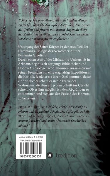 Untergang des Seins: Körper ist der erste Teil einer Horror-Trilogie. Die Geschichte wird von dem Protagonisten erzählt und handelt von seiner Reise in den Wahnsinn. Er und seine Freunde wurden durch einen Brief der Miskatonic-Universität in Arkham zu einer archäologischen Ausgrabung beordert, doch der Weg dorthin sollte sich als beschwerlicher erweisen, als zunächst angenommen und was mag sie dort wohl erwarten?