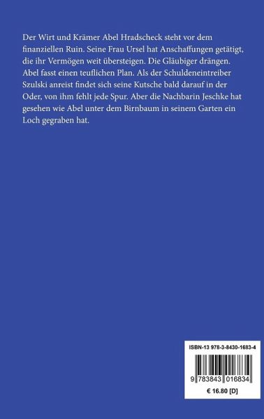 Der Wirt und Krämer Abel Hradscheck steht vor dem finanziellen Ruin. Seine Frau Ursel hat Anschaffungen getätigt, die ihr Vermögen weit übersteigen. Die Gläubiger drängen. Abel fasst einen teuflichen Plan. Als der Schuldeneintreiber Szulski anreist findet sich seine Kutsche bald darauf in der Oder, von ihm fehlt jede Spur. Aber die Nachbarin Jeschke hat gesehen wie Abel unter dem Birnbaum in seinem Garten ein Loch gegraben hat.