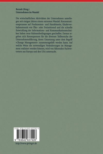 Die wirtschaftlichen Aktivitäten der Unternehmen unterliegen seit einigen Jahren einem extremen Wandel. Konzentrationsprozesse auf Produzenten-, und Handelsseite, Käuferverhaltenstrends wie Öko- oder Freizeittrend und die schnelle Entwicklung der Informations- und Kommunikationstechniken haben neue Rahmenbedingungen geschaffen. Daraus ergeben sich Konsequenzen für die diversen Teilbereiche der Unternehmensführung, deren Umsetzung unter dem Begriff "Change Management" zusammengefaßt werden kann. Auf welche Weise die notwendigen Veränderungen im Management realisiert werden können, wird von führenden Fachvertretern aus Europa und den USA untersucht.