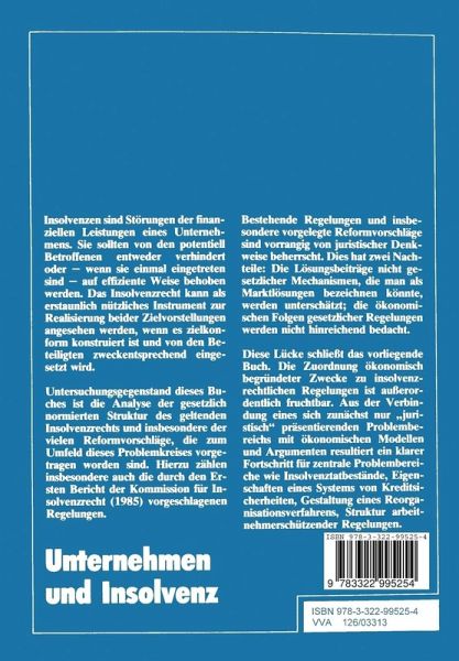 Inhaltsübersicht.- 1. Kapitel Das Problem.- I Das Insolvenzrecht in der Diskussion.- II Kreditverträge und Insolvenzrecht.- III Arbeitsverträge und Insolvenzrecht.- IV Aufbau des Buches.- 2. Kapitel Regelungen des Insolvenzrechts und Rekonstruktion seiner Zwecke.- I Überblick über die wichtigsten Regelungen der Konkursordnung.- II Die wichtigsten Regelungen der Vergleichsordnung.- III Zwecke (Funktionen) des Insolvenzrechts.- IV Zusammenfassung.- 3. Kapitel Das Problem der Auslösung insolvenzrechticher Verfahren.- I Das Problem.- II Überschuldung und modifizierte zweistufige Methode.- III Zur Relevanz betriebswirtschaftlicher "Konkursmodelle".- IV Was kann der Tatbestand der Überschuldung leisten?.- V Verfahrensauslösung und Verhalten der Gläubiger.- VI Zusammenfassung.- 4. Kapitel Kreditsicherheiten und Insolvenzverfahren.- I Funktionen privatrechtlich vereinbarter Kreditsicherheiten im Rahmen eines Kreditkontraktes.- II Wirkungen privatrechtlich vereinbarter Kreditsicherheiten auf dritte, nicht gesicherte Gläubiger.- III Verteilungsregelung und Fremdfinanzierung: Kreditsicherheiten und Prioritätenrangfolge oder par condicio creditorum?.- IV Zusammenfassung.- 5. Kapitel Reformüberlegungen und -vorschläge zum Recht der Kreditsicherheiten, insbesondere der Mobiliarsicherheiten.- I Zum Aufbau dieses Kapitels.- II Die Ausgangslage.- III Vorschläge zur Erhöhung der Sicherungskraft von Mobiliarsicherheiten.- IV Vorschläge zum Abbau von Nachteilen für Dritte vor Eintritt der Insolvenz.- V Vorschläge zum Abbau von Nachteilen für Dritte nach Eintritt der Insolvenz.- VI Ausbaufähige Reformideen.- VII Exkurs: Anfechtungsregelungen.- VIII Zusammenfassung.- 6. Kapitel Ausgewählte Probleme des Reorganisationsverfahrens.- I Wird ein gesetzlich kodifiziertesReorganisationsverfahren überhaupt benötigt?.- II Grundzüge des geplanten Reorganisationsverfahrens in der Bundesrepublik Deutschland.- III Grundzüge des amerikanischen Reorganisationsverfahrens.- IV Verfahrenszweck und Gläubigeransprüche.- V Sanierungskredite.- VI Reorganisationsverfahren und Eigentümer.- VII Zusammenfassung.- 7. Kapitel Gesetzlicher Schutz von Arbeitnehmerinteressen in der Insolvenz.- I Das Problem.- II Gesetzliche Vorschriften.- III Zusammenfassung.- 8. Kapitel Kündigungsschutz und Insolvenz.- I Das Problem.- II Kündigung von Arbeitsverhältnissen und individualrechtlicher Kündigungsschutz.- III Kündigungsschutz und Entscheidungen der Eigentümer im Vorfeld der Insolvenz.- IV Kündigungsschutz und Entscheidungen nach eingetretener Insolvenz.- V Kündigungsschutz und Reform des Insolvenzrechts.- VI Zusammenfassung.- 9. Kapitel Sozialplan und Insolvenz.- I Das Problem.- II Beteiligungsrechte des Betriebsrates bei Betriebsänderungen gemäß 111-113 BetrVG.- III Sozialplan und Entscheidungen der Eigentümer im Vorfeld der Insolvenz.- IV Sozialplan und Entscheidungen nach eingetretener Insolvenz.- V Gesetzliche Übergangsregelung und Reformvorschläge.- VI Zusammenfassung.- 10. Kapitel 613a BGB und Insolvenz.- I Das Problem.- II Funktionen und Tatbestandsvoraussetzungen von 613a BGB.- III Entscheidungen der Eigentümer im Vorfeld der Insolvenz und 613a BGB.- IV Verwertungsentscheidungen nach eingetretener Insolvenz und 613a BGB.- V Vorschläge zur Modifikation nach 613a BGB im Rahmen der Insolvenzrechtsform.- VI Zusammenfassung.- 11. Kapitel Ergebnisse.- Verzeichnis der benutzten Urteile.