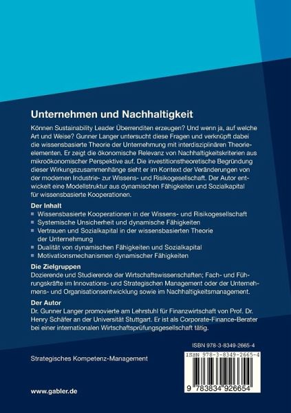 Können Sustainability Leader Überrenditen erzeugen? Und wenn ja, auf welche Art und Weise? Gunner Langer untersucht diese Fragen und verknüpft dabei die wissensbasierte Theorie der Unternehmung mit interdisziplinären Theorieelementen. Er zeigt die ökonomische Relevanz von Nachhaltigkeitskriterien aus mikroökonomischer Perspektive auf. Die investitionstheoretische Begründung dieser Wirkungszusammenhänge sieht er im Kontext der Veränderungen von der modernen Industrie- zur Wissens- und Risikogesellschaft. Der Autor entwickelt eine Modellstruktur aus dynamischen Fähigkeiten und Sozialkapital für wissensbasierte Kooperationen.
