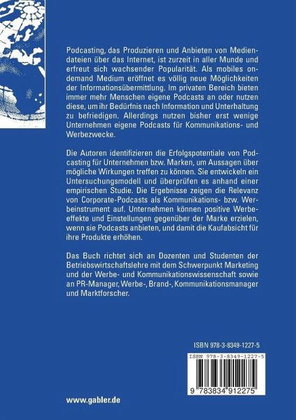 Die Autoren identifizieren die Erfolgspotentiale von Podcasting für Unternehmen bzw. Marken, um Aussagen über mögliche Wirkungen treffen zu können. Sie entwickeln ein Untersuchungsmodell und überprüfen es anhand einer empirischen Studie. Die Ergebnisse zeigen die Relevanz von Corporate-Podcasts als Kommunikations- bzw. Werbeinstrument auf. Unternehmen können positive Werbeeffekte und Einstellungen gegenüber der Marke erzielen, wenn sie Podcasts anbieten und damit die Kaufabsicht für ihre Produkte erhöhen.