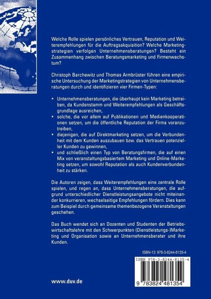 ChristophBarchewitz und Thomas Armbrüster führen eine empirische Untersuchung der Marketingstrategien von Unternehmensberatungen durch und identifizieren vier Firmen-Typen: