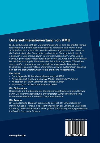 Die Ermittlung des richtigen Unternehmenswerts ist eine der größten Herausforderungen für die betriebswirtschaftliche Forschung und Praxis. Sonja Schütte-Biastoch untersucht dominierte Bewertungsanlässe, bei denen an die Stelle individueller Grenzpreise ein typisierter Grenzpreis tritt, der als objektivierter Entscheidungswert interpretiert werden kann. Unter Berücksichtigung von Typisierungserfordernissen stellt die Autorin die Problemfelder bei der Bestimmung der Parameter des Zukunftserfolgswerts (ZEW) Überschussgröße, Lebensdauer und Kapitalisierungszinssatz, besonders im Hinblick auf kleine und mittlere Unternehmen (KMU), systematisch geschlossen dar und gibt Empfehlungen für die praktische Ausgestaltung.