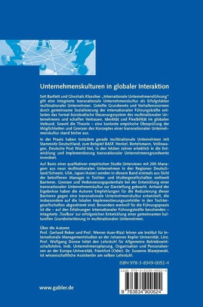 Auf Basis einer qualitativen empirischen Studie (Interviews mit 190 Managern aus neun multinationalen Unternehmen in den Regionen Deutschland/Schweiz, USA, Japan/Asien) diskutiert der Leitfaden aus der Sicht der betroffenen Manager in Tochter- und Muttergesellschaften weltweit Barrieren, Grenzen und Verbesserungspotential bei der Entwicklung einer transnationalen Unternehmenskultur. Anhand der Aussagen der Befragten werden Empfehlungen für die Redu-zierung dieser Barrieren gegen eine transnationale Unternehmenskultur entwickelt, die insbe-sondere auf die lokalen Implementierungsumfelder in den Tochtergesellschaften abgestimmt sind. Den Abschluss bildet die Darstellung einer - auf den Erfahrungen internationaler Führungs-kräfte beruhenden - integrierten 'toolbox' zur erfolgreichen Entwicklung einer gemeinsamen kulturellen Grundorientierung in multinationalen Unternehmen.