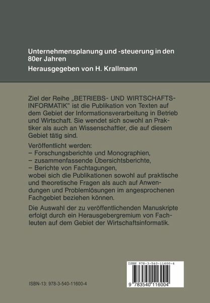 Plenumsreferate.- Unternehmensplanung und Konzernsteuerung als Probleme des Informationsmanagements - dargestellt im Rahmen der Strategie des Volkswagenwerkes.- Planungssysteme für mittlere und kleine Unternehmen.- Möglichkeiten und Grenzen der in der betrieblichen Praxis eingesetzten Planungsverfahren.- Arbeitskreis 1 Trends in der Informationstechnologie - Möglichkeiten des Einsatzes in der Unternehmensplanung.- Einfluß neuer Informationstechnologien auf Methoden und Konzepte der Unternehmensplanung.- Relationale Datenbanksysteme für den Endbenutzer.- Arbeitskreis 2 Zunehmende Unsicherheit der Basisdaten in den 80er Jahren - Konsequenzen für die Unternehmensplanung.- Ökonometrische Modelle - die Antwort zur Reduzierung planerischer Unsicherheit?.- Arbeitskreis 3 Planungsinstrumente und ihre Entwicklung.- Computergestütztes Rechnungswesen als Planungshilfe.- Arbeitskreis 4 Entscheidungsunterstützungssysteme.- Konzeption von Methodenbanken zur Entscheidungsunterstützung.- Leistungsfähigkeit strategischer Entscheidungsunterstützungssysteme im Planungsprozeß.- Arbeitskreis 5 Standort der Unternehmensplanung im Betrieb.- Struktur der Unternehmensplanung.- Gestaltungsmöglichkeiten der Planungsfunktion, dargestellt mit der morphologischen Methode.- Standort der Unternehmensplanung im Führungssystem.- Arbeitskreis 6 Organisation des Planungsprozesses.- Probleme und Entscheidungsunterstätzungen im Prozeß der Unternehmensplanung.- Organisation der operativen Planung und deren Kontrolle in einem Unternehmen der Mineralölindustrie.- Arbeitskreis 7 Ausbildung für und in der Planung.- Ausbildungsstrategie über Informationstechnologien zur Unterstützung der Unternehmensplanung und -steuerung - insbesondere ADV für Fachabteilungen.- Arbeitskreis 8Akzeptanz von Planungssystemen.- Grenzen und Möglichkeiten einer Planung im Dialog mit dem Rechner.- Zur Akzeptanz von computergestützten Planungssystemen.- Arbeitskreis 9 Planungssysteme für kleine und mittlere Unternehmen.- Planungssysteme für die technischen Unternehmensbereiche.- Aufgaben und Möglichkeiten des Controlling in Klein-und Mittelbetrieben.- Von der Plantafel zum computergestützten Planungsmodell.- Arbeitskreis 10 Grenzen von Planungssystemen.- Grenzen von Planungssystemen.- Grenzen von Planungssystemen - quantitative und qualitative Aspekte.- Plenumsreferat.- Zusammenfassung der Ergebnisse der Arbeitskreise und Ausblick.- Autorenverzeichnis.- Moderatorenverzeichnis.