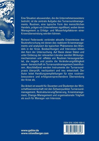 In der Forschung zum Turnaround von Unternehmungen ist die Bedeutung des Erwerbs von Routinen bislang so gut wie nicht untersucht worden. Das ist insofern verwunderlich, weil gerade dort die Existenz von Rigiditäten, Inflexibilitäten und Widerständen eine große Rolle spielt und deren Bestehen wiederholt beschrieben wurde (letztlich ist das gesamte Verständnis von ?unfreezing? und ?refreezing? im Turnaround durch das Vorhandensein von Rigiditäten geleitet). Das gilt nicht nur für die Krisenbewältigung, sondern auch für die Krisenentstehung. Gerade die aktuelle Routinenforschung (in der Tradition von NELSON/WINTER (1982) e- standen, dann aber wesentlich in den aktuellen Arbeiten von COHEN/BURKHART/DOSI/ EGIDI/MARENGO/WARGLIEN/WINTER (1996), FELDMAN (2000), PENTLAND/ FELDMAN (2005), BETSCH (2005) und vielen anderen weiter entwickelt) hat eine Anzahl von Konzepten erarbeitet, die sich offensichtlich zur Analyse dieser Phänomene eignen. B- lang hat es allerdings keinen substanziellen Rückgriff auf die Resultate dieser Forschung zur Untersuchung von Unternehmenskrisen gegeben. Hier setzt die Arbeit von Richard Federowski an und schließt eine wichtige Forschungslücke, indem sie die beiden Forschungsfelder ?Turnaround? und ?Routine? erstmals systematisch miteinander verbindet. Dabei ist es dem Autor gelungen, die wesentlichen Wirkungsmec- nismen und -effekte von Routinen im Turnaroundmanagement zu identifizieren und zu v- orten. Im Ergebnis dieser Analyse wird deutlich, dass Routinen auf unterschiedlichste Weise auf den Kontext, Inhalt und Prozess des Turnaroundmanagements wirken. Sie sind nicht nur Bremser, sondern wirken auch als stabilisierende Faktoren in unruhigen Zeiten des radikalen Wandels. Routinen zeigen sich vor diesem Hintergrund als komplexePhänomene mit vielen Gesichtern.