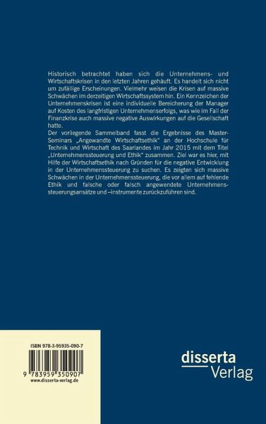 Historisch betrachtet haben sich die Unternehmens- und Wirtschaftskrisen in den letzten Jahren gehäuft. Es handelt sich nicht um zufällige Erscheinungen. Vielmehr weisen die Krisen auf massive Schwächen im derzeitigen Wirtschaftssystem hin. Ein Kennzeichen der Unternehmenskrisen ist eine individuelle Bereicherung der Manager auf Kosten des langfristigen Unternehmenserfolgs, was wie im Fall der Finanzkrise auch massive negative Auswirkungen auf die Gesellschaft hatte. Der vorliegende Sammelband fasst die Ergebnisse des Master-Seminars "Angewandte Wirtschaftsethik" an der Hochschule für Technik und Wirtschaft des Saarlandes im Jahr 2015 mit dem Titel "Unternehmenssteuerung und Ethik" zusammen. Ziel war es hier, mit Hilfe der Wirtschaftsethik nach Gründen für die negative Entwicklung in der Unternehmenssteuerung zu suchen. Es zeigten sich massive Schwächen in der Unternehmenssteuerung, die vor allem auf fehlende Ethik und falsche oder falsch angewendete Unternehmenssteuerungsansätzeund -instrumente zurückzuführen sind.