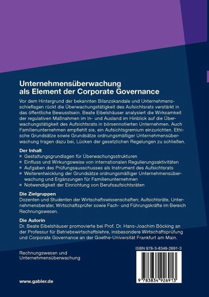Vor dem Hintergrund der bekannten Bilanzskandale und Unternehmensschieflagen rückt die Überwachungstätigkeit des Aufsichtsrats verstärkt in das öffentliche Bewusstsein. Beate Eibelshäuser analysiert die Wirksamkeit der regulativen Maßnahmen im In- und Ausland im Hinblick auf die Überwachungstätigkeit des Aufsichtsrats in börsennotierten Unternehmen. Auch Familienunternehmen empfiehlt sie, ein Aufsichtsgremium einzurichten. Ethische Grundsätze sowie Grundsätze ordnungsmäßiger Unternehmensüberwachung tragen dazu bei, Lücken der gesetzlichen Regelungen zu schließen.