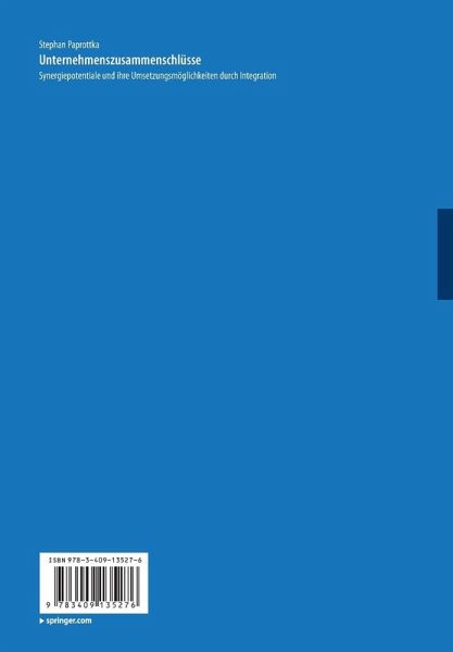 Akquisitionen, Fusionen und strategische Allianzen werden von Unternehmensführungen häufig mit dem Argument "Synergie" begründet und durchgeführt. Die Mißerfolgsquote dieser Zusammenschlüsse ist jedoch hoch. Das eigentliche Problem liegt zumeist in der fehlenden bzw. unzureichenden syergetischen Planung. Stephan Paprottka entwickelt ein Gesamtsynergiekonzept zur Identfizierung und Berechnung von Synergiepotentialen und deren Umsetzung in der Integrationsphase. Unternehmen können damit eine wesentlich exaktere Zusammenschlußplanung durchführen und eine Überschätzung von Synergieeffekten vermeiden. Verzeichnis: Stephan Paprottka entwickelt ein Gesamtsynergiekonzept zur Identifizierung und Berechnung von Synergiepotentialen und deren Umsetzung in der Integrationsphase. Unternehmen können damit eine wesentlich exaktere Zusammenschlußplanung durchführen und eine Überschätzung von Synergieeffekten vermeiden.