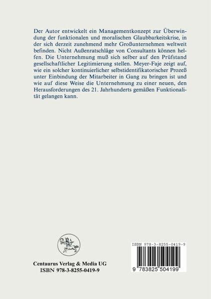 Der Autor führt Schlüsselfragen wie "Unternehmung wozu? ... wohin ... für wen?" in methodischer Reduktion auf die gesellschaftliche Legitimierung zurück und gelangt so, als Ökonom, zu weiterführenderen Antworten, als sie bisher in den Wirtschaftswissenschaften gewagt wurden. Schlüssig entfaltet sich für den Leser ein Managementkonzept, bestimmt durch die Begriffe Selbstidentität, Membership, Konkreativität, Zielfindung als kontinuierlicher identifikatorischer Prozeß. Vier Leitthesen durchziehen den Untersuchungsgang: 1. Die Unternehmung muß sich nicht nur gegenüber der Gesellschaft, sondern auch gegenüber ihren Mitarbeitern radikal neu legitimieren, also auch innen wie außen die Fragen "Unternehmung wozu?" und "Mensch sein wozu?" als Einheit angehen. 2. Dadurch wird die Unternehmung alsbald wieder sehend für ihre eigentlichen ökonomisch und gesellschaftlich erfolgreichen Aufgaben, und sie erhält als solche eine neue Sozialgestalt. Vor allem Hierarchie erhält nicht wieder einmal ein neues Gewand, sondern alle Menschen in der Unternehmung integrieren sich kooperativ in Membership und Coentrepreneurship. 3. So entstehende Unternehmensidentität ist ein Vorgang, ein kontinuierliches Werden. Deshalb bekommt Prozeßdenken einen übergeordneten Stellenwert, so unverzichtbar Systemkonzeptionen technologisch im einzelnen bleiben mögen. Der selbstidentifikatorische Prozeß in der Unternehmung ist im weitesten Sinne ein kontinuierlicher Zielfindungsprozeß, in den sich die Beteiligten frei einbringen. 4. Der konkrete Nutzen: Rückgewinnung einer nachhaltigen Überlebensperspektive, jenseits von vermeintlichen Globalisierungs- und Deregulierungszwängen. Zugewinn bisher ungeahnter konkreativer Qualitäten und Chancen für ein neues Unternehmertum. Unternehmertum als solches wird keineswegs überflüssig. Doch der entscheidende Beitrag des Unternehmers zur "schöpferischen Zerstörung" geht weit über Schumpeter hinaus. Ein Paradigmawechsel? Vielleicht. Einsolcher könnte aber nur gelingen, wenn man Selbstidentifikation nicht als Patentmörtel für alte Bausteine betrachtet, sondern "Bewährtes" sichtet und auch hier neues Design wagt. Meyer-Faje legt kein Rezeptbuch, sondern einen Anleitung zum überfälligen Umdenken vor. Eine Botschaft, die Management, Betriebswirtschaftslehre, Betriebspsychologie, Wirtschaftspädagogik und Wirtschaftsethik, nicht zuletzt die Wirtschaftspraxis gleichermaßen zu provozieren vermag.