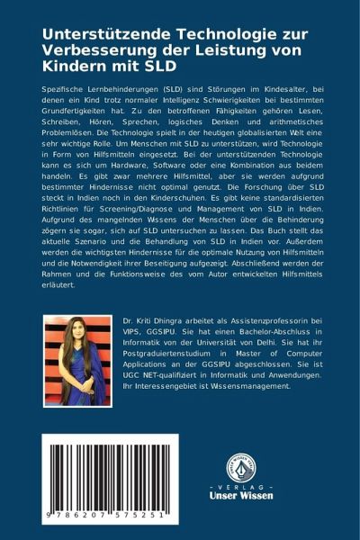 Spezifische Lernbehinderungen (SLD) sind Störungen im Kindesalter, bei denen ein Kind trotz normaler Intelligenz Schwierigkeiten bei bestimmten Grundfertigkeiten hat. Zu den betroffenen Fähigkeiten gehören Lesen, Schreiben, Hören, Sprechen, logisches Denken und arithmetisches Problemlösen. Die Technologie spielt in der heutigen globalisierten Welt eine sehr wichtige Rolle. Um Menschen mit SLD zu unterstützen, wird Technologie in Form von Hilfsmitteln eingesetzt. Bei der unterstützenden Technologie kann es sich um Hardware, Software oder eine Kombination aus beidem handeln. Es gibt zwar mehrere Hilfsmittel, aber sie werden aufgrund bestimmter Hindernisse nicht optimal genutzt. Die Forschung über SLD steckt in Indien noch in den Kinderschuhen. Es gibt keine standardisierten Richtlinien für Screening/Diagnose und Management von SLD in Indien. Aufgrund des mangelnden Wissens der Menschen über die Behinderung zögern sie sogar, sich auf SLD untersuchen zu lassen. Das Buch stellt das aktuelle Szenario und die Behandlung von SLD in Indien vor. Außerdem werden die wichtigsten Hindernisse für die optimale Nutzung von Hilfsmitteln und die Notwendigkeit ihrer Beseitigung aufgezeigt. Abschließend werden der Rahmen und die Funktionsweise des vom Autor entwickelten Hilfsmittels erläutert.