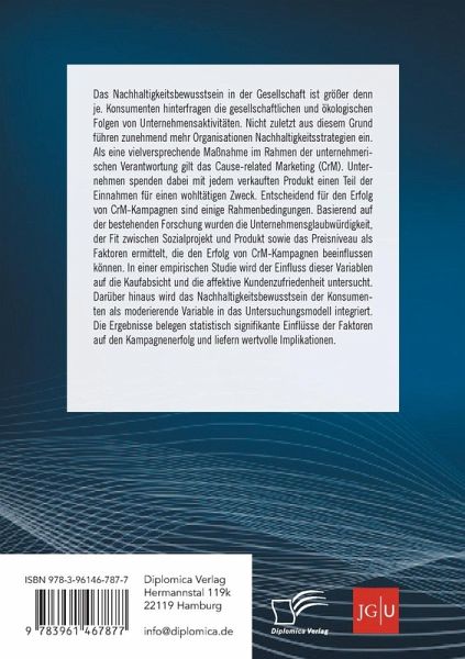 Das Nachhaltigkeitsbewusstsein in der Gesellschaft ist größer denn je. Konsumenten hinterfragen die gesellschaftlichen und ökologischen Folgen von Unternehmensaktivitäten. Nicht zuletzt aus diesem Grund führen zunehmend mehr Organisationen Nachhaltigkeitsstrategien ein. Als eine vielversprechende Maßnahme im Rahmen der unternehmerischen Verantwortung gilt das Cause-related Marketing (CrM). Unternehmen spenden dabei mit jedem verkauften Produkt einen Teil der Einnahmen für einen wohltätigen Zweck. Entscheidend für den Erfolg von CrM-Kampagnen sind einige Rahmenbedingungen. Basierend auf der bestehenden Forschung wurden die Unternehmensglaubwürdigkeit, der Fit zwischen Sozialprojekt und Produkt sowie das Preisniveau als Faktoren ermittelt, die den Erfolg von CrM-Kampagnen beeinflussen können. In einer empirischen Studie wird der Einfluss dieser Variablen auf die Kaufabsicht und die affektive Kundenzufriedenheit untersucht. Darüber hinaus wird das Nachhaltigkeitsbewusstsein der Konsumenten als moderierende Variable in das Untersuchungsmodell integriert. Die Ergebnisse belegen statistisch signifikante Einflüsse der Faktoren auf den Kampagnenerfolg und liefern wertvolle Implikationen.