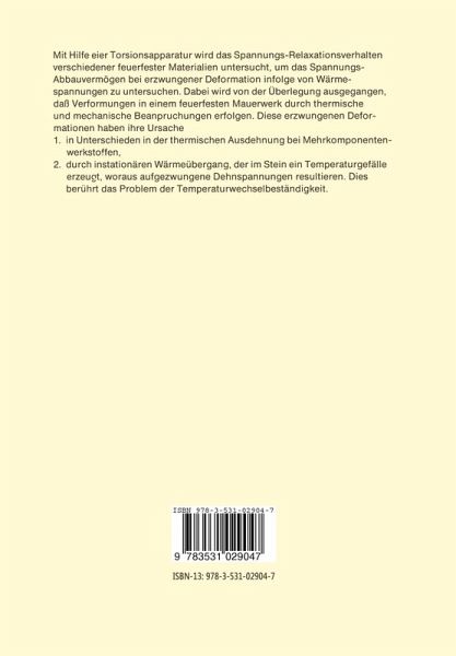 Verforrnungen werden in einem feuerfesten Mauerwerk durch thermische und mechanische Beanspruchung erzwungen. Solche erzwungenen Deforrnationen konnen hervorgerufen werden: 1. durch Unterschiede in der thermischen Ausdehnung bei Mehrkomponentenwerkstoffen 2. durch instationaren Warmeubergang, der ein Temperatur gefalle im Stein erzeugt mit resultierenden, aufgezwun genen Dehnspannungen. Dies beruhrt das Problem der Tem peraturwechselbestandigkeit. Diese Dehnspannungen speichern an den Korngrenzen elasti sche Energie, die abgebaut werden muB, damit es nicht zu einer RiBbildung und zu einer Zerstorung des Werkstoffge fuges kommt. Es bietet sich deshalb besonders die Untersuchung des Span nungs-Relaxations-Verhaltens an, urn das Spannungs-Abbauver mogen bei erzwungener Deformation infolge von Warrnespan nungen zu untersuchen. Die mit inneren Energieverlusten verbundene zeitlich ver zogerte Selbstregulierung eines thermodynamischen Systems auf ein neues Gleichgewicht, als Antwort aufden Wechsel einer auBerlichen Veranderlichen, wird grundsatzlich als Relaxation bezeichnet. Im besonderen, wo die auBeren Vari ablen Spannung (abhangig) und Verforrnung (unabhangig, kon stant) sind, ist das Phanomen als mechanische Relaxation bekannt, das Werkstoffverhalten wird durch eine Zeitab hangigkeit des Moduls beschrieben. AIle Stoffe zeigen Relaxationserscheinungen, je nach der Dauer der Beanspruchung und dem durch auBere Parameter, insbesondere durch die Temperatur, bedingten Stoffzustand. Ein Kriteriurn fur die Sprodigkeit eines Stoffes ist darin zu sehen, ob die Wirkung der auBeren Krafte (Schlag, Tem peraturschock) kurz ist im Vergleich zur Relaxationszeit der durch die auBeren Krafte hervorgerufenen Spannung.