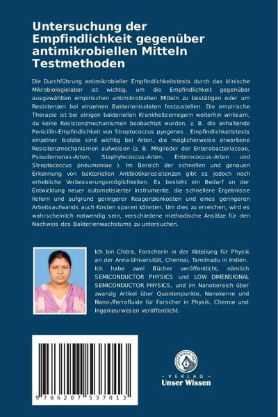 Die Durchführung antimikrobieller Empfindlichkeitstests durch das klinische Mikrobiologielabor ist wichtig, um die Empfindlichkeit gegenüber ausgewählten empirischen antimikrobiellen Mitteln zu bestätigen oder um Resistenzen bei einzelnen Bakterienisolaten festzustellen. Die empirische Therapie ist bei einigen bakteriellen Krankheitserregern weiterhin wirksam, da keine Resistenzmechanismen beobachtet wurden, z. B. die anhaltende Penicillin-Empfindlichkeit von Streptococcus pyogenes . Empfindlichkeitstests einzelner Isolate sind wichtig bei Arten, die möglicherweise erworbene Resistenzmechanismen aufweisen (z. B. Mitglieder der Enterobacteriaceae, Pseudomonas-Arten, Staphylococcus-Arten, Enterococcus-Arten und Streptococcus pneumoniae ). Im Bereich der schnellen und genauen Erkennung von bakteriellen Antibiotikaresistenzen gibt es jedoch noch erhebliche Verbesserungsmöglichkeiten. Es besteht ein Bedarf an der Entwicklung neuer automatisierter Instrumente, die schnellere Ergebnisseliefern und aufgrund geringerer Reagenzienkosten und eines geringeren Arbeitsaufwands auch Kosten sparen könnten. Um dies zu erreichen, wird es wahrscheinlich notwendig sein, verschiedene methodische Ansätze für den Nachweis des Bakterienwachstums zu untersuchen.