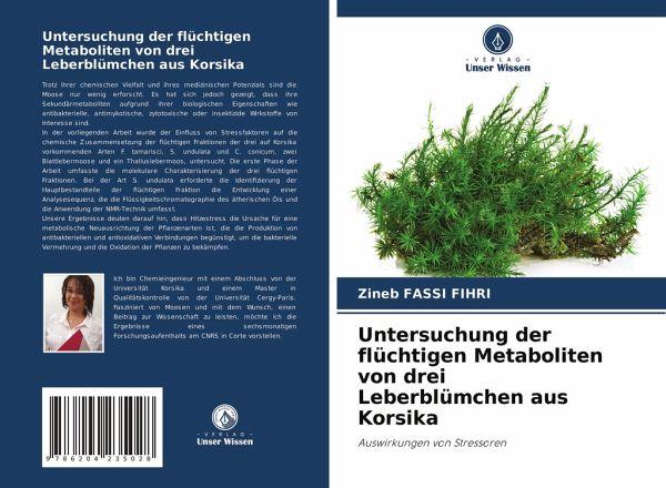 Trotz ihrer chemischen Vielfalt und ihres medizinischen Potenzials sind die Moose nur wenig erforscht. Es hat sich jedoch gezeigt, dass ihre Sekundärmetaboliten aufgrund ihrer biologischen Eigenschaften wie antibakterielle, antimykotische, zytotoxische oder insektizide Wirkstoffe von Interesse sind.In der vorliegenden Arbeit wurde der Einfluss von Stressfaktoren auf die chemische Zusammensetzung der flüchtigen Fraktionen der drei auf Korsika vorkommenden Arten F. tamarisci, S. undulata und C. conicum, zwei Blattlebermoose und ein Thalluslebermoos, untersucht. Die erste Phase der Arbeit umfasste die molekulare Charakterisierung der drei flüchtigen Fraktionen. Bei der Art S. undulata erforderte die Identifizierung der Hauptbestandteile der flüchtigen Fraktion die Entwicklung einer Analysesequenz, die die Flüssigkeitschromatographie des ätherischen Öls und die Anwendung der NMR-Technik umfasst. Unsere Ergebnisse deuten darauf hin, dass Hitzestress die Ursache für eine metabolische Neuausrichtung der Pflanzenarten ist, die die Produktion von antibakteriellen und antioxidativen Verbindungen begünstigt, um die bakterielle Vermehrung und die Oxidation der Pflanzen zu bekämpfen.