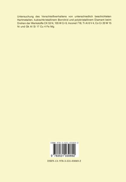 Die Untersuchung des Verschlei8verhaltens verschieden be schichteter Hartmetalle wurde beim Drehen des Vergutungs stahles Ck 53 N und des Kaltarbeitsstahles 105 WCr 6 durch gefuhrt. Die im doppellogarithrnischen Koordinatensystem angenaherten Verschlei8geraden zeigen fur aIle drei Schneidstoffe einen typischen Verlauf. Unabhangig von Werkstoff und Schnittbe dingungen wei sen die Geraden nach Erreichen einer gewissen Kolktiefe bzw. Verschlei8markenbreite einen Knickpunkt auf. Die bis zu diesem Zeitpunkt nur sehr geringe Verschlei8zu nahrne erfolgt danach wesentlich rascher. Anhand von Untersuchungen mit einem Elektronenstrahl-Mikro analysator konnte gezeigt werden, da8 die Ursache fur den Knickpunkt im Verlauf der Verschlei8geraden in der Zersto rung der verschlei8hemmenden Hartstoffschicht auf Span- und Freiflache der Hartmetalle zu sehen ist. Der beschleunigte Verschlei8zuwachs erfolgt aufgrund des geringeren Verschle- widerstandes des Basishartmetalls. Wie die Untersuchungen ergaben, eignen sich alle drei ein gesetzten Beschichtungsmaterialien nahezu gleich gut fur die Zerspanung der beiden Stahle. Bei der TiC-Al 0 -be 2 3 schichteten Sorte konnte ein deutlicher Einflu8 der Alu miniurnoxid-Schutzschicht auf das Verschlei8verhalten d- ser Schneidstoffsorte nicht beobachtet werden. Die sehr dunne Al 0 -Hartstoffschicht wa~ insbesondere bei der Zerspanung 2 3 des Ck 53 N schon nach relativ kurzer Schnittzeit zerstort, so da8 das Verschlei8verhalten vorwie. gend von der TiC-Zwi schenschicht bestimmt wurde. Tro~z gro8em Freiflachenver schlei8 konntenbei der TiC-Ti(C,N)-TiN-beschichteten Hart metallplatte Einsatzzeiten erreicht werden, die in der Gro8enordnung der mit TiC- bzw. TiC-AI 0 -beschichteten 2 3 Platten lagen. ZuruckzufUhren ist dieses hauptsachlich -1- auf die groBere Schichtdicke des Substrats bei diesem Schneidstoff.