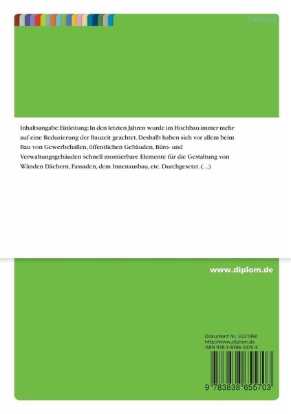 In den letzten Jahren wurde im Hochbau immer mehr auf eine Reduzierung der Bauzeit geachtet. Deshalb haben sich vor allem beim Bau von Gewerbehallen, öffentlichen Gebäuden, Büro- und Verwaltungsgebäuden schnell montierbare Elemente für die Gestaltung von Wänden Dächern, Fassaden, dem Innenausbau, etc. Durchgesetzt. Hierfür wurden von vielen Herstellern verschiedene Systeme in unterschiedlichen Materialien entwickelt und auf den Markt gebracht, die eine kurze Montagezeit, Funktionalität und architektonische Eleganz miteinander verbinden.