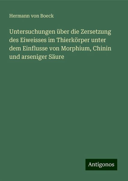 Untersuchungen über die Zersetzung des Eiweisses im Thierkörper unter dem Einflusse von Morphium, Chinin und arseniger Säure - Boeck, Hermann von