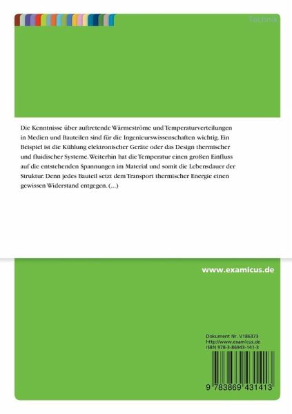 Projektarbeit aus dem Jahr 2006 im Fachbereich Ingenieurwissenschaften - Maschinenbau, Note: 1.3, Technische Universität Ilmenau, Sprache: Deutsch, Abstract: Die Kenntnisse über auftretende Wärmeströme und Temperaturverteilungen in Medien und Bauteilen sind für die Ingenieurswissenschaften wichtig. Ein Beispiel ist die Kühlung elektronischer Geräte oder das Design thermischer und fluidischer Systeme. Weiterhin hat die Temperatur einen großen Einfluss auf die entstehenden Spannungen im Material und somit die Lebensdauer der Struktur. Denn jedes Bauteil setzt dem Transport thermischer Energie einen gewissen Widerstand entgegen. Das FEM-Programm ANSYS stellt vier Methoden zur Strahlungsmodellierung zur Verfügung.In dieser Arbeit werden alle Methoden mit ihren wählbaren Parametern untersucht. Die Parameter werden einzeln erläutert und ihre Auswirkungen beschrieben. Im Anschluss werden die Vor- und Nachteile jeder Methode aufgezählt.