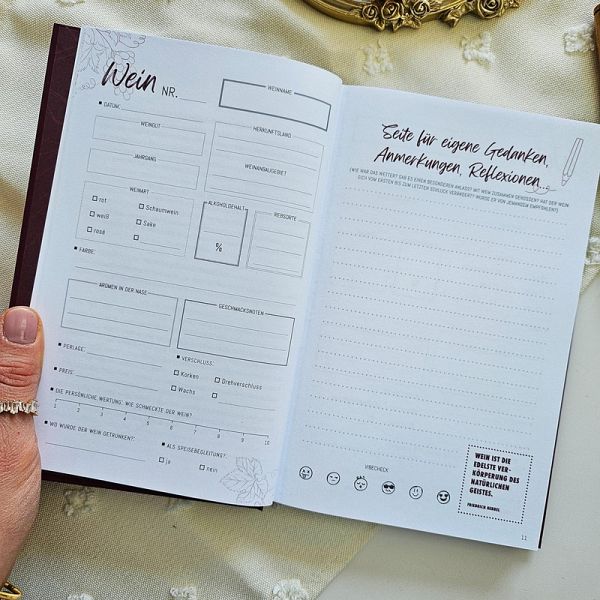 Das Leben ist zu kurz, um schlechten Wein zu trinken. In diesem Logbuch können einfach und übersichtlich, mit genügend Platz zum Eintragen und Notieren, die besten Genussmomente festgehalten und verglichen werden. Welcher Wein hat sich als wahre Offenbarung erwiesen, welcher edle Tropfen ist überbewertet - in Ihrem persönlichen Wein-Logbuch liegt die Wahrheit. Ob Weinliebhaber, Hobby-Sommelier oder Traubenverehrer - Unsere Fragen und Anregungen zum Ankreuzen und Ausfüllen lassen Sie den Rebsaft gleich doppelt genießen und liefern einen legitimen Grund für die nächste Kostprobe. Und sollten einem bei einem ganz besonderen Geschmackserlebnis auch mal die Worte fehlen, dann machen unsere Impulse das Notieren noch einfacher. So leicht wird man zum Dionysos!