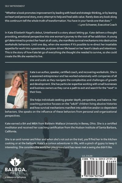 "Whether a book promotes improvement by leading with head and strategic thinking, or by leaning on heart and personal story, every attempt to help and heal adds value. Rarely does any book along this continuum tell the whole truth of transformation. You have in your hands one that does." - Lynn Schoener, Executive Coach In Kate Elizebeth Nagel's debut, Untethered is a story about letting go. Kate delivers a thought provoking, emotional perspective into one woman's journey to the root of her addiction. A young girl determined to protect her heart at all costs, she manifests survival mechanisms into destructive workaholic behaviors. Until one day, when she wonders if it's possible to re-direct her insatiable appetite for work into a passionate, purpose-driven life based on her heart's ideals and intentions. This is the story of how Kate let go of everything she thought she needed to survive, so she could create the life she wanted to live.
