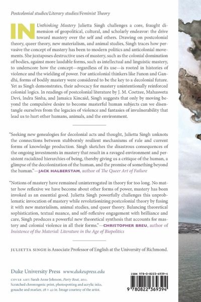 Julietta Singh challenges the drive toward the mastery over self and others by showing how the forms of self-mastery advocated by anticolonial thinkers like Fanon and Gandhi unintentionally reproduced colonial logic, thereby leading her to argue for a more productive human subjectivity that is not centered on concepts of mastery.