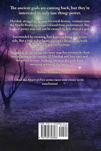 The ancient gods are coming back, but they're interested in only one thing: power. Marshal, struggling against his royal destiny, ventures into the Starlit Realm to rescue a friend from enslavement. But his new power may still not be enough to defy that of a god. Surrounded by enemies, Seri hopes to bring one to her side. But a visit to her home exposes a devastating truth about herself and her heritage. Through it all, an invincible army marches toward the final portal between the worlds. If Marshal and Seri can't seal the portal in time, nothing can stop the gods from sweeping across all the lands. Antises trembles... And the Heart of Fire series races ever closer to its conclusion!