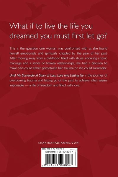 What if to live the life you dream you must first let go? This is the question one woman was confronted with as she found herself emotionally and spiritually crippled by the pain of her past. After moving away from a childhood filled with abuse, enduring a toxic marriage and a series of broken relationships, she had a decision to make. She could either perpetuate her trauma or she could surrender. Until My Surrender: A Story of Loss, Love and Letting Go is the journey of overcoming trauma and letting go of the past to achieve what seems impossible - a life of freedom and filled with love.