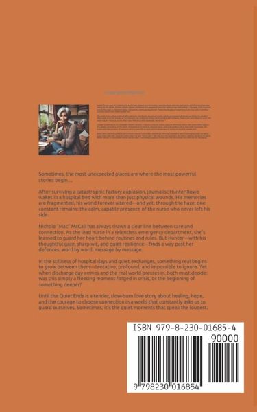 Sometimes, the most unexpected places are where the most powerful stories begin... After surviving a catastrophic factory explosion, journalist Hunter Rowe wakes in a hospital bed with more than just physical wounds. His memories are fragmented, his world forever altered-and yet, through the haze, one constant remains: the calm, capable presence of the nurse who never left his side. Nichola "Mac" McCall has always drawn a clear line between care and connection. As the lead nurse in a relentless emergency department, she's learned to guard her heart behind routines and rules. But Hunter-with his thoughtful gaze, sharp wit, and quiet resilience-finds a way past her defences, word by word, message by message. In the stillness of hospital days and quiet exchanges, something real begins to grow between them-tentative, profound, and impossible to ignore. Yet when discharge day arrives and the real world presses in, both must decide: was this simply a fleeting moment forged in crisis, or the beginning of something deeper? Until the Quiet Ends is a tender, slow-burn love story about healing, hope, and the courage to choose connection in a world that constantly asks us to guard ourselves. Sometimes, it's the quiet moments that speak the loudest.