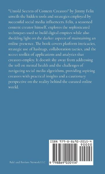 "Untold Secrets of Content Creators" by Jimmy Felix unveils the hidden tools and strategies employed by successful social media influencers. Felix, a seasoned content creator himself, explores the sophisticated techniques used to build digital empires while also shedding light on the darker aspects of maintaining an online presence. The book covers platform intricacies, strategic use of hashtags, collaboration tactics, and the secret toolkit of applications and analytics that creators employ. It doesn't shy away from addressing the toll on mental health and the challenges of navigating social media algorithms, providing aspiring creators with practical insights and a cautionary perspective on the reality behind the curated online world.