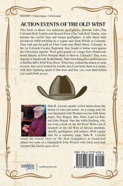This book is about two unknown gunfighters, Herman John (The Colorado Kid) Tomlin and Howard Price (The Utah Kid) Tomlin, who became the world's best and fastest gunfighters. It tells about their adventures while traveling on a wagon train from Illinois to Colorado. They both pan for gold on Clear Creek near Black Hawk, Colorado. In the 1st Colorado Cavalry Regiment, they fought in Indian wars against the Chiricahua Apache. Were gold guards on a stage from Deadwood, South Dakota, to First National Bank in Denver, Colorado? They were deputies in Deadwood, South Dakota. They were doing show performances in Buffalo Bill's Wild West Show. When they walked the streets or came to town, they never looked for trouble, but if you back them in a corner, with their lightning speed of fast draw and fire, you were dead before you could blink an eye.