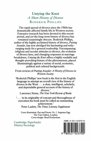 Roderick Phillips, author of the highly acclaimed history of Divorce, Putting Asunder, has now abridged his fascinating and wide-ranging study for general readership. Encompassing religious and secular attitudes to divorce, the evolution of divorce laws, and changing responses to marriage breakdown, Untying the Knot offers a highly readable and thought-provoking history of the phenomenon.