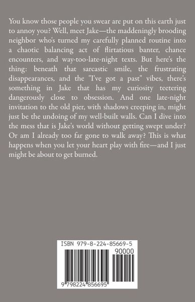You know those people you swear are put on this earth just to annoy you? Well, meet Jake-the maddeningly brooding neighbor who's turned my carefully planned routine into a chaotic balancing act of flirtatious banter, chance encounters, and way-too-late-night texts. But here's the thing: beneath that sarcastic smile, the frustrating disappearances, and the "I've got a past" vibes, there's something in Jake that has my curiosity teetering dangerously close to obsession. And one late-night invitation to the old pier, with shadows creeping in, might just be the undoing of my well-built walls. Can I dive into the mess that is Jake's world without getting swept under? Or am I already too far gone to walk away? This is what happens when you let your heart play with fire-and I just might be about to get burned.