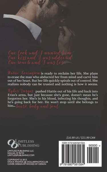"The Bargain" (Book #1) "Unveiled" (Book #2) "Confessed" (Book #3) coming Fall 2015... One look and I wanted him. One kiss and I was addicted. One touch and I was lost. Hattie Covington is ready to reclaim her life... She plans to erase the man who abducted her from mind and carve him out of her heart. But her life quickly spirals out of control. She realizes nobody can be trusted and nothing is how it seems. Ryker Vargas pushed Hattie out of his life and back into Evan's arms, but just because she's gone, doesn't mean he's forgotten her. She's in his blood, infecting his thoughts, and he's going back for her. He won't stop until she belongs to him... Heart, body and soul.