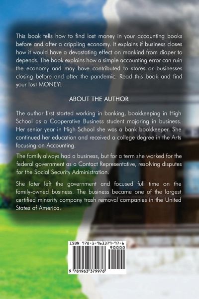 This book informs how to find lost money and improve a crippling economy. This is a must read to inform you how the pandemic affected the world economy and possible tells how to improve the world finances. It informs how an accounting error may have been one of the problems why we are all suffering from baby diapers to adult depends. Grab a copy and find your lost money. Keywords: Depreciation is a tax write off not an expense according to income statement. Question why so many stores are closing due to lack of income. What eat up profit and why people are suffering from aged to babies as the book state diapers to depends. Covid 19 was worst than great depression on economy and caused as many deaths as a plague.