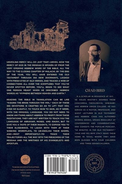 Unveiling Mercy will do just that-unveil how the mercy of God in the Messiah is spoken of from the very opening Hebrew word of the Bible, all the way to the closing chapter of Malachi. By the end of the year, you will have entered the Old Testament through 365 new doorways, looked with fresh eyes at old verses, and traced a web of connections all over the Scriptures that you've never spotted before. You'll begin to see what one person meant when he described Hebrew words as "hyphens between heaven and earth." Reading the Bible in translation can be like "kissing the bride through the veil." Each of these 365 devotions is crafted so as to lift that veil ever so slightly, to touch skin to skin, as it were, with the original language. You do not need to know anything about Hebrew to profit from these meditations. They are not written to teach you the language of Abraham, Moses, and Isaiah, but to give you a taste of their insights, to expose you to their eloquence, to laugh with them at their winking wordplays, to un-English their idioms, and-most importantly-to trace their trajectories all the way into the preaching of the Messiah and the writings of his evangelists and apostles.