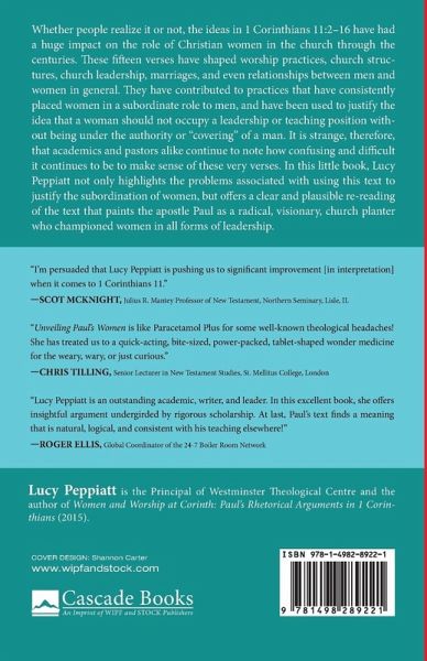 Whether people realize it or not, the ideas in 1 Corinthians 11:2-16 have had a huge impact on the role of Christian women in the church through the centuries. These fifteen verses have shaped worship practices, church structures, church leadership, marriages, and even relationships between men and women in general. They have contributed to practices that have consistently placed women in a subordinate role to men, and have been used to justify the idea that a woman should not occupy a leadership or teaching position without being under the authority or "covering" of a man. It is strange, therefore, that academics and pastors alike continue to note how confusing and difficult it continues to be to make sense of these very verses. In this little book, Lucy Peppiatt not only highlights the problems associated with using this text to justify the subordination of women, but offers a clear and plausible re-reading of the text that paints the apostle Paul as a radical, visionary, church planter who championed women in all forms of leadership.