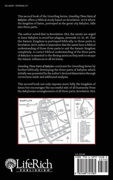 This second book of the Unveiling Series, Unveiling Three Parts of Babylon, by Dr. William C. Taggart III, offers a biblical study based on Revelation 16:19 where the kingdom of Satan, portrayed as the great city Babylon, falls into three parts. The author noted that in Revelation 18:4, the saints are urged to leave Babylon to avoid her plagues, Jeremiah 51: 35, 49. That the Satanic kingdom is portrayed biblically in three parts in Revelation 16:19, makes it imperative that the saints have a biblical understanding of those three parts to exit the Satanic kingdom completely. A correct biblical understanding of the three parts of Babylon is essential to the fleeing saints as they seek to escape the Satanic influences in all its forms. Unveiling Three Parts of Babylon continues the Unveiling Series by further biblically developing the three parts of Babylon which initially was presented by the author's doctoral dissertation through corrections made and additional analysis. This second book not only exposes more fully the kingdom of Satan but encourages the successful exit of all humanity from the Babylonian entanglements of all three parts, Revelation 18:4.