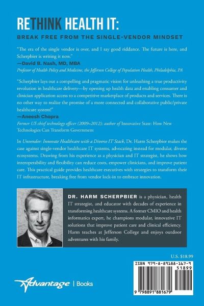 In Unvendor, Dr. Harm Scherpbier challenges the healthcare industry's reliance on single-vendor IT systems. In this timely and thought-provoking book, Dr. Scherpbier argues for a return to diversity in healthcare IT--a "best-of-breed" approach that integrates advanced technologies from multiple vendors to power a more dynamic, competitive, and resilient healthcare ecosystem.