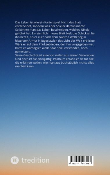 Als mein Vater einen seiner unzähligen Krankenhausaufenthalte hatte, kam ihm die Idee, sein Leben einmal aufschreiben zu wollen. Man muss dazu sagen, dass er vieles war, aber kein Leser und erst recht kein Schreiber. Trotzdem hat er Stift und Papier in die Hand genommen und drauf losgeschrieben.Rausgekommen ist dieses Werk aus Nostalgie, Unterhaltung und Inspiration. Es handelt von seiner Kindheit in größter Armut, seinen schwierigen Anfängen im Beruf und in Deutschland, von seinen komplexen Erfahrungen mit Job und Familie und schließlich seinem (Un)Ruhestand.Der Autor beschreibt in Vor- und Nachwort, wie dieses Werk genau entstanden ist und warum man auch als neutrale Person dieser Geschichte viel Positives abgewinnen kann.