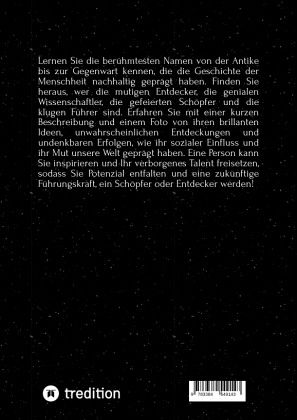 Lernen Sie die berühmtesten Namen von der Antike bis zur Gegenwart kennen, die die Geschichte der Menschheit nachhaltig geprägt haben. Finden Sie heraus, wer die mutigen Entdecker, die genialen Wissenschaftler, die gefeierten Schöpfer und die klugen Führer sind. Erfahren Sie mit einer kurzen Beschreibung und einem Foto von ihren brillanten Ideen, unwahrscheinlichen Entdeckungen und undenkbaren Erfolgen, wie ihr sozialer Einfluss und ihr Mut unsere Welt geprägt haben. Eine Person kann Sie inspirieren und Ihr verborgenes Talent freisetzen, sodass Sie Potenzial entfalten und eine zukünftige Führungskraft, ein Schöpfer oder Entdecker werden!…mehr