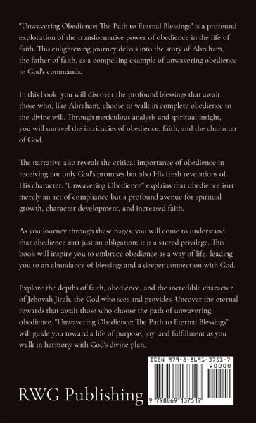 "Unwavering Obedience: The Path to Eternal Blessings" is a profound exploration of the transformative power of obedience in the life of faith. This enlightening journey delves into the story of Abraham, the father of faith, as a compelling example of unwavering obedience to God's commands. In this book, you will discover the profound blessings that await those who, like Abraham, choose to walk in complete obedience to the divine will. Through meticulous analysis and spiritual insight, you will unravel the intricacies of obedience, faith, and the character of God. The narrative also reveals the critical importance of obedience in receiving not only God's promises but also His fresh revelations of His character. "Unwavering Obedience" explains that obedience isn't merely an act of compliance but a profound avenue for spiritual growth, character development, and increased faith. As you journey through these pages, you will come to understand that obedience isn't just an obligation; it is a sacred privilege. This book will inspire you to embrace obedience as a way of life, leading you to an abundance of blessings and a deeper connection with God. Explore the depths of faith, obedience, and the incredible character of Jehovah Jireh, the God who sees and provides. Uncover the eternal rewards that await those who choose the path of unwavering obedience. "Unwavering Obedience: The Path to Eternal Blessings" will guide you toward a life of purpose, joy, and fulfillment as you walk in harmony with God's divine plan.