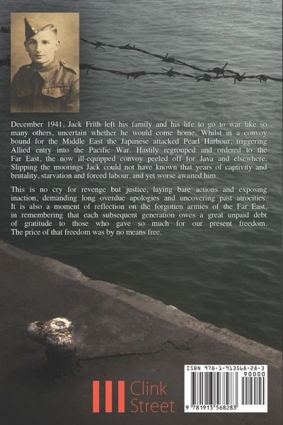 December 1941. Jack Frith left his family and his life to go to war like so many others, uncertain whether he would come home. Whilst in a convoy bound for the Middle East the Japanese attacked Pearl Harbour, triggering Allied entry into the Pacific War. Hastily regrouped and ordered to the Far East, the now ill-equipped convoy peeled off for Java and elsewhere. Slipping the moorings, Jack could not have known that years of captivity and brutality, starvation and forced labour, and yet worse, awaited him. This is no cry for revenge but justice, laying bare actions and exposing inaction, demanding long overdue apologies and uncovering past atrocities. It is also a moment of reflection on the forgotten armies of the Far East, in remembering each subsequent generation owes a great unpaid debt of gratitude to those who gave so much for our present freedom. The price of that freedom was by no means free.