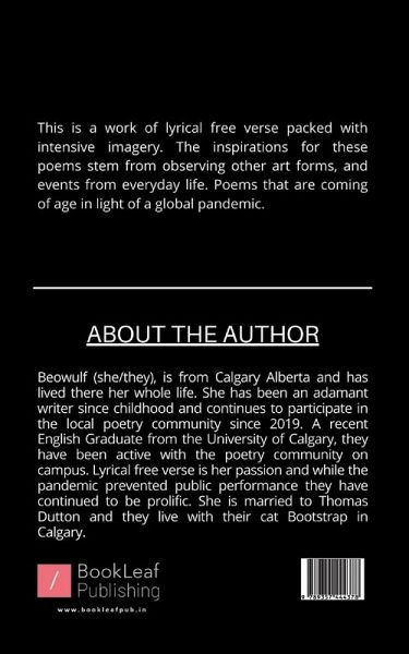 Beowulf (she/they), is from Calgary Alberta and has lived there her whole life. She has been an adamant writer since childhood and continues to participate in the local poetry community since 2019. A recent English Graduate from the University of Calgary, they have been active with the poetry community on campus. Lyrical free verse is her passion and while the pandemic prevented public performance they have continued to be prolific. She is married to Thomas Dutton and they live with their cat Bootstrap in Calgary.