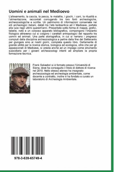 L'allevamento, la caccia, la pesca, le malattie, i giochi, i cani, la ritualità e l'alimentazione, raccontati coniugando tra loro fonti archeologiche, archeozoologiche e scritte. Un patrimonio di informazioni conservate nei siti archeologici italiani, datati tra l'età tardoantica ed il Medioevo, portate alla luce negli ultimi quarant'anni. Presentate sotto forma di mappe, grafici, tabelle, note e un corposo apparato bibliografico, compongono l'impianto filologico attraverso cui si colgono i caratteri antropologici del rapporto tra uomini ed animali. Una parte storiografica, in cui si narrano i progressi compiuti dalla disciplina archeozoologica a partire dalla fine del Settecento per giungere sino ai nostri giorni, completa questo libro. Certamente di grande utilità per la ricerca storica, biologica ed ecologica, oltre che per gli appassionati di Medioevo, si presta anche ad un impiego come strumento sussidiario per i giovani archeozoologi intenti ad ampliare la propria formazione tecnica.