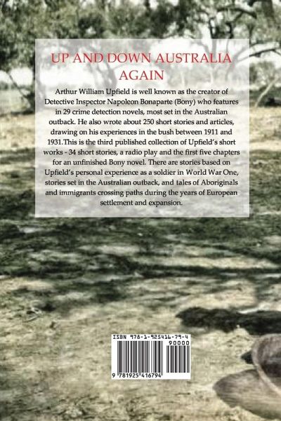 Arthur William Upfield is well known as the creator of Detective Inspector Napoleon Bonaparte (Bony) who features in 29 crime detection novels, most set in the Australian outback. It is not well known that he also wrote about 250 short stories and articles, drawing on his experiences in the bush between 1911 and 1931. Up and Down Australia Again is the third published collection of Upfield's short works. Kees de Hoog has selected 34 short stories, a radio play and the first five chapters for an unfinished Bony novel, some items being published for the first time. There are stories based on Upfield's personal experience as a soldier in World War One, stories set in the Australian outback, and tales of Aboriginals and immigrants crossing paths during the years of European settlement and expansion.